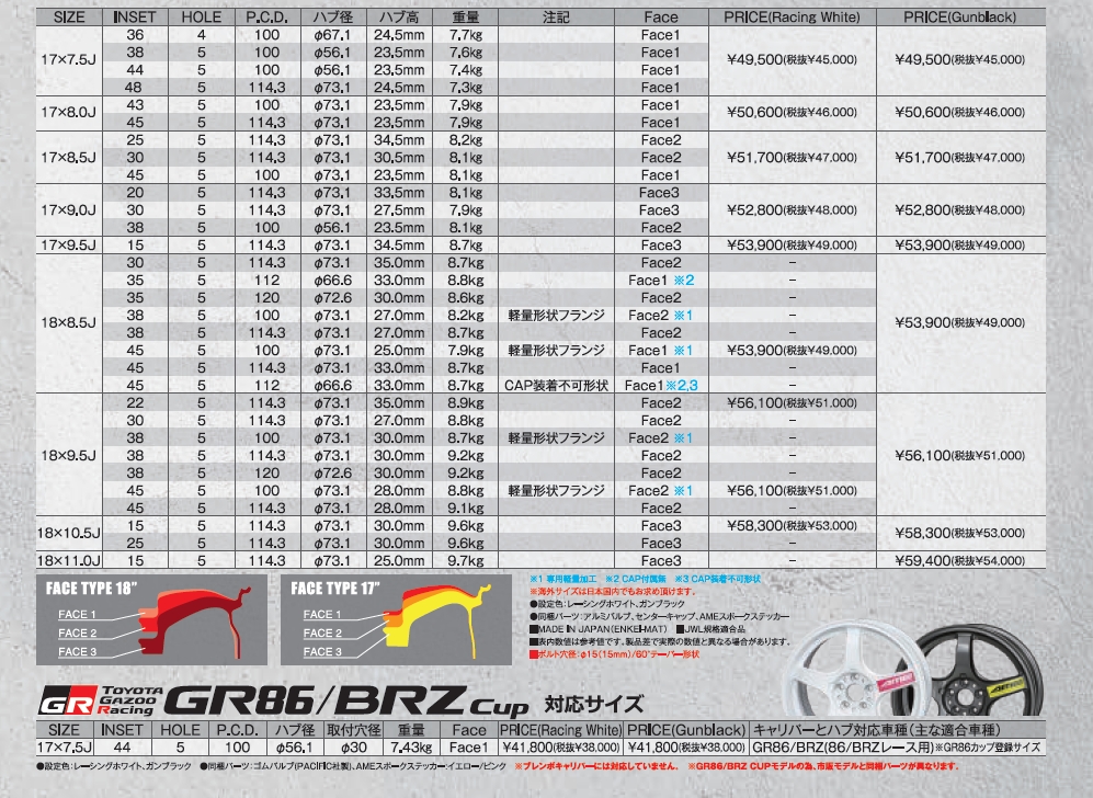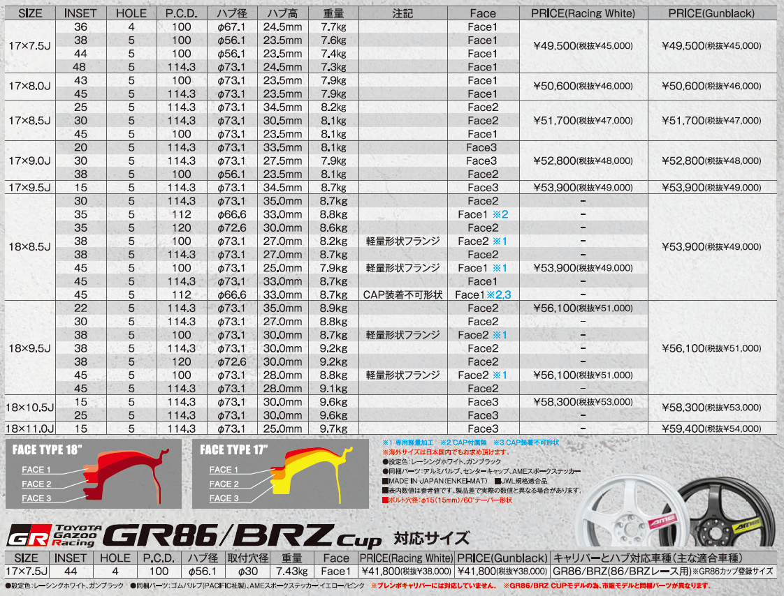 18インチ8.5Jインセット45 5-100サイズでは、徹底的に軽量に拘り、8.0キロを下回る7.99kgという鋳造では脅威的な軽量を誇ります。